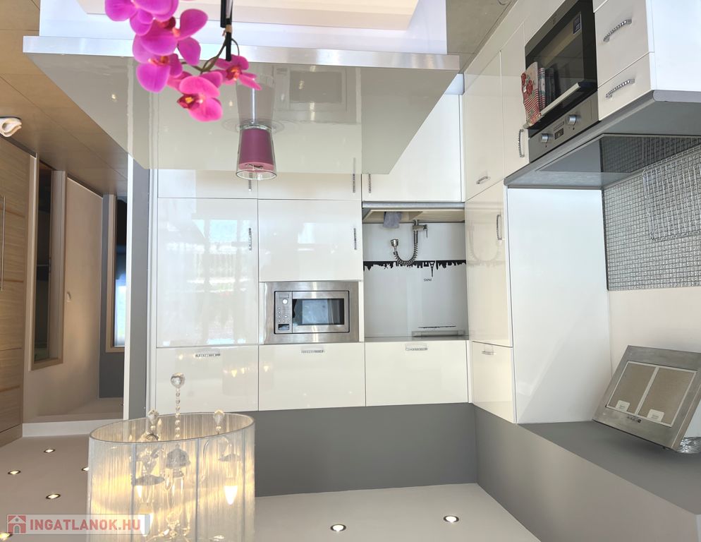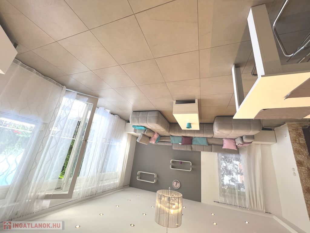 - földszinten 74 nm-es, terasz- és kertkapcsolatos, amerikai konyhás nappali + 1 szoba, fürdőszoba;
