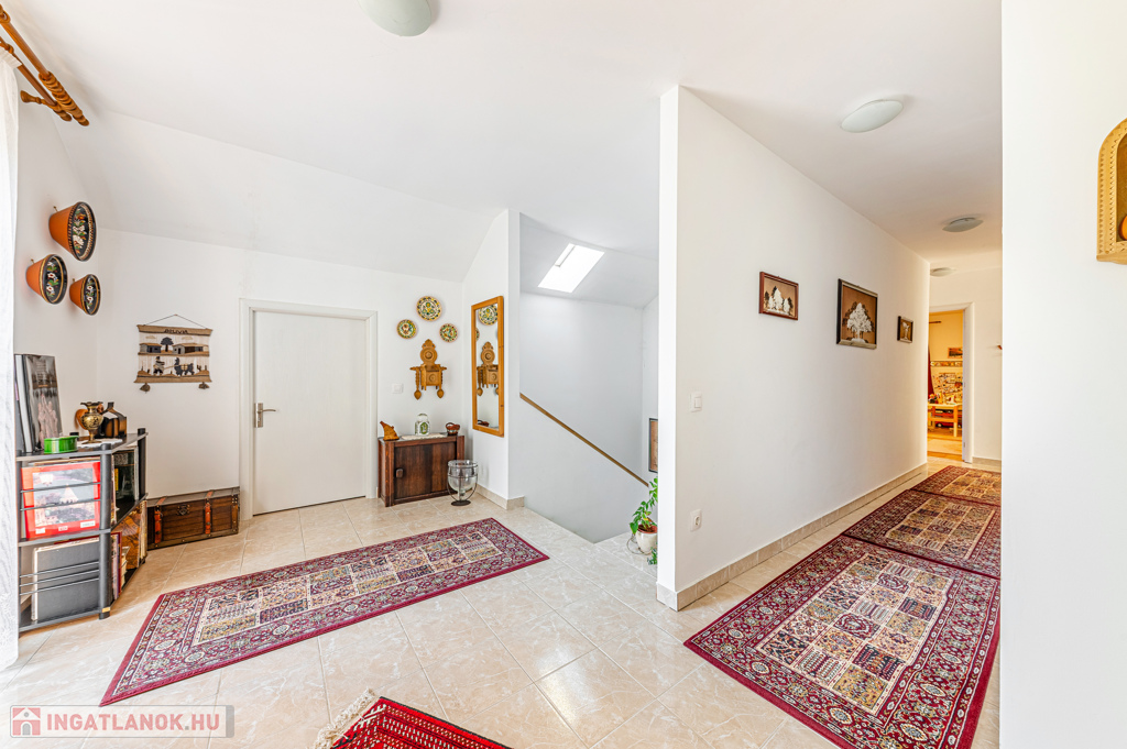 Az emelet teljes belmagasságával és átgondolt térkialakításával a család privát szféráját biztosítja: három tágas hálószoba, két fürdő, hatalmas gardrób és mosókonyha ad helyet a mindennapok kényelmének.