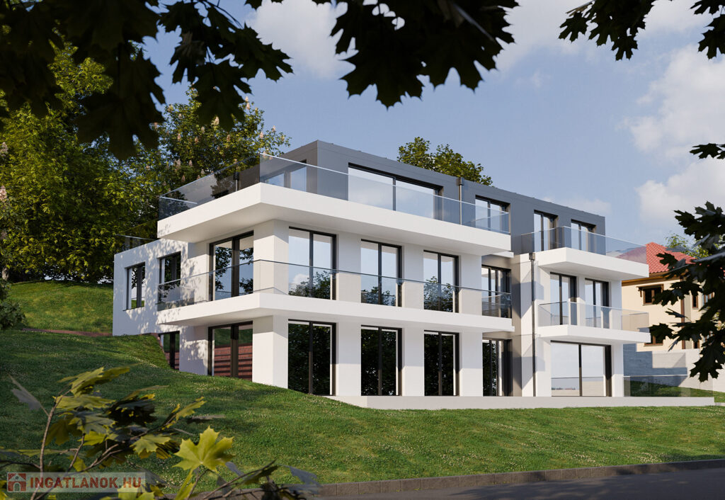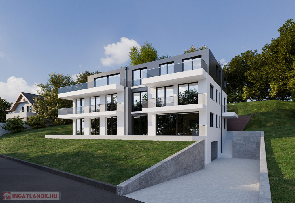 A 4 lakásos, téglaépítésű, prémium kategóriás épület egy ~1500 nm-es, délkeleti tájolású, panorámás telken került megépítésre.